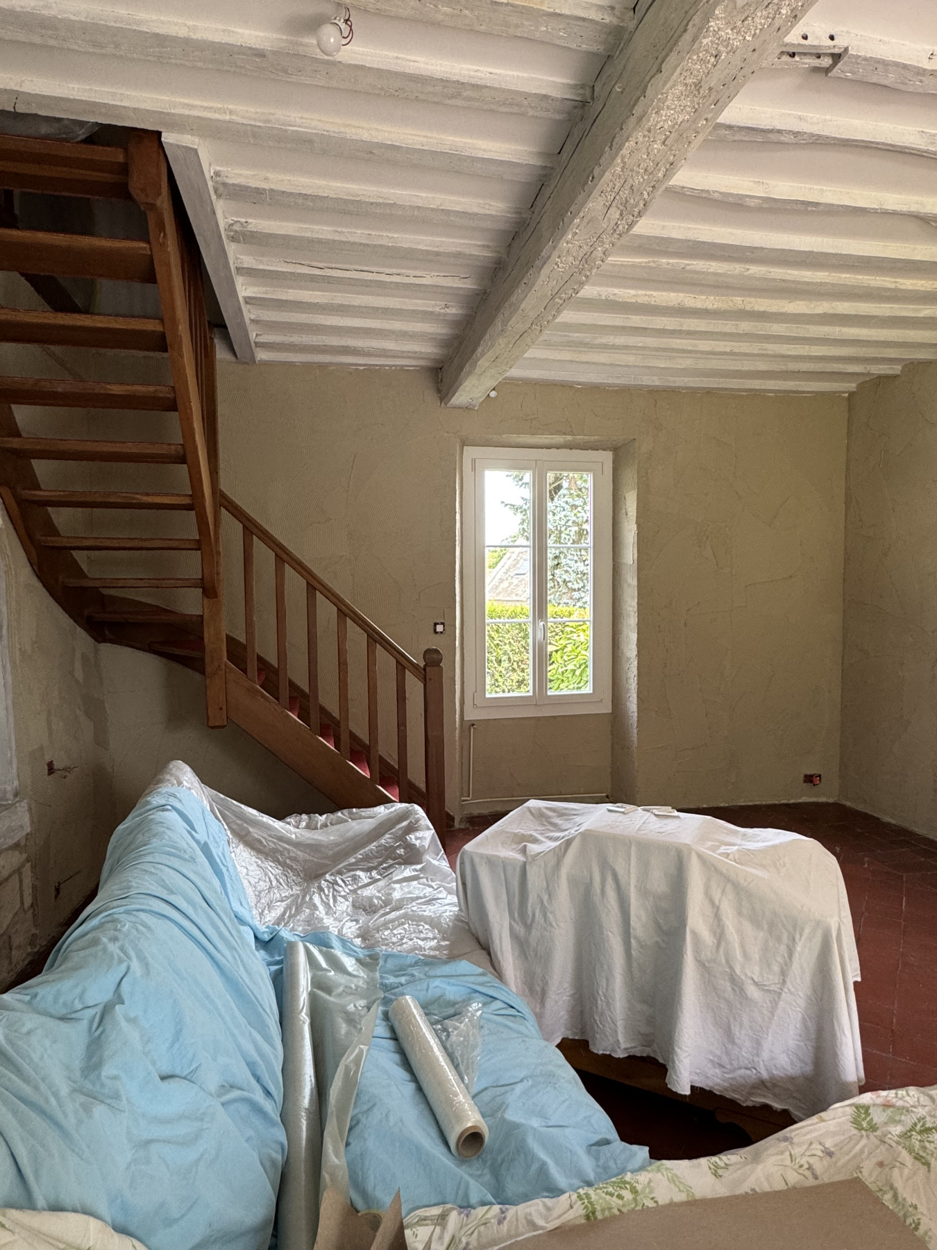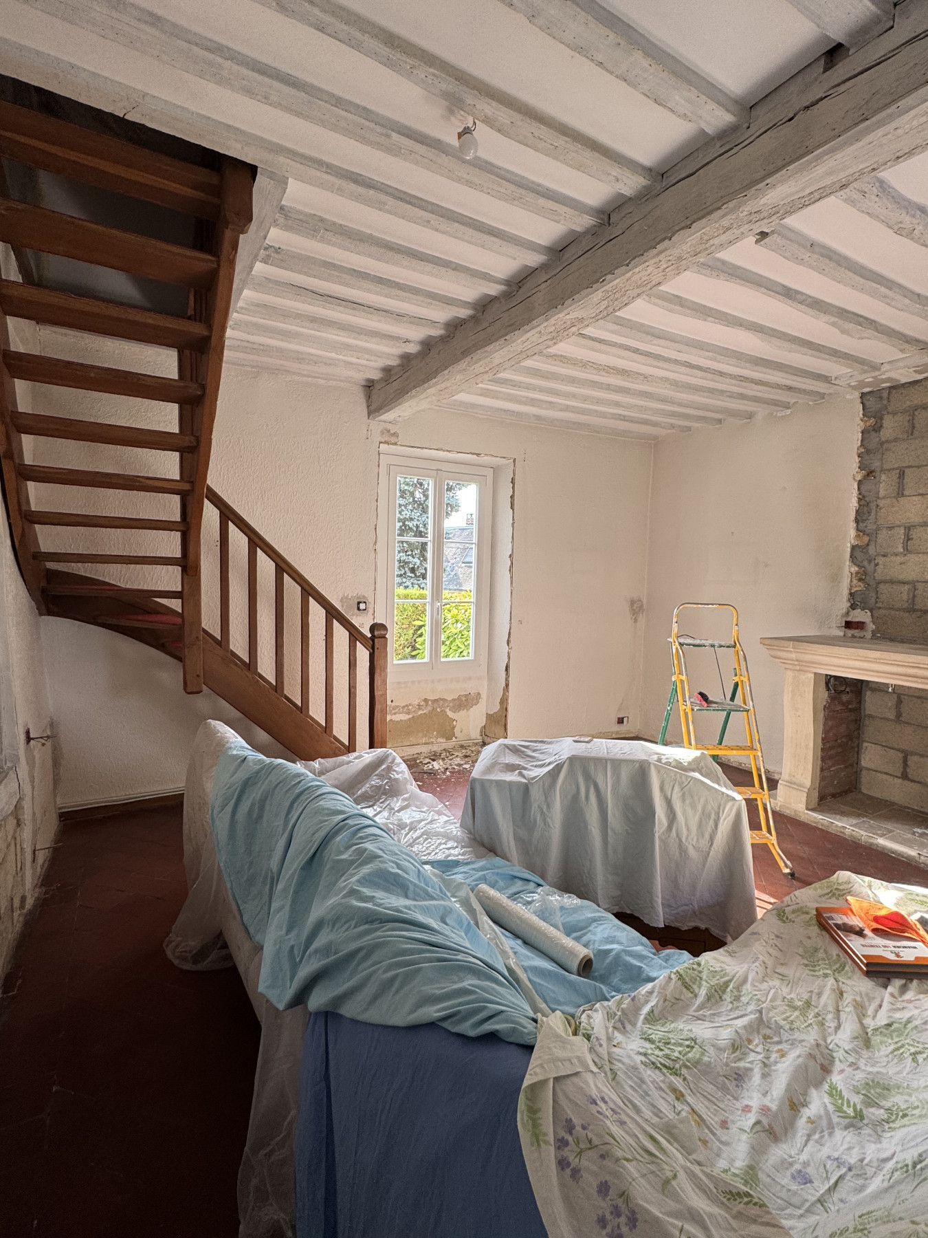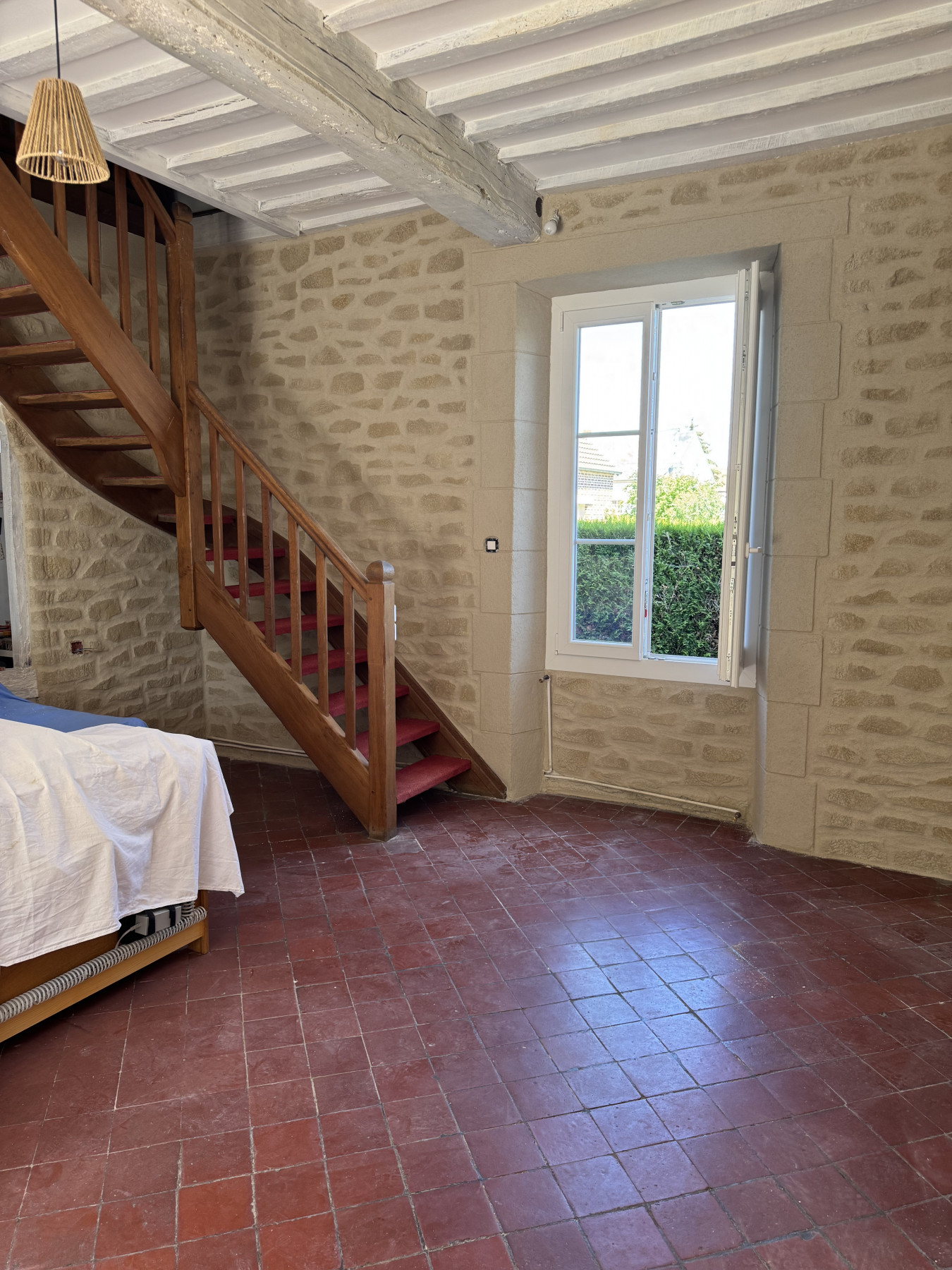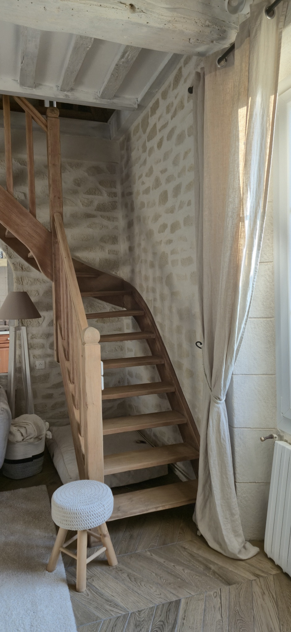 Sur ce type de chantier, le support en placo est soigneusement préparé afin de garantir une parfaite accroche de l’enduit. L’enduit décoratif aspect pierre est ensuite appliqué et sculpté à la main, permettant de reproduire fidèlement le relief, les joints et l’irrégularité naturelle de la pierre. Chaque mur devient ainsi unique, avec un rendu authentique et chaleureux.
